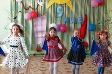 Торжественно прошло праздничное представление, посвященное 70 годовщине нашей славной Победы. Дети с удовольствием пели песни военных лет, танцевали "Синий платочек". В гости приходил солдат, варил кашу из топора, которую впоследствии с удовольствием попробовали ребята всего детского сада. На таких патриотических праздниках воспитывается уважительное отношение к ветеранам войны, солдатам Российской армии, формируются волевые качества, отзывчивость.
