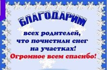 Уважаемые родители! Выражаем благодарность за оказанную помощь. Вы – главные помощники в непростом труде по воспитанию детей. Не смотря на занятость, вы всегда остаётесь неравнодушными к жизни детского сада. Ваша активная помощь позволяет нам создавать условия для прогулок детей. Только вместе мы сможем сделать пребывание деток в детском саду комфортным.