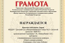 | Короткое название: | МБДОУ "Детский сад общеразвивающего вида № 23 "Золотой колосок" ЗМР РТ" |