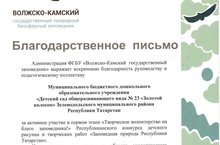 Администрация ФГБУ "Волжско-Камский государственный заповедник" выражает благодарность руководству и педагогическому коллективу ДОО за активное участие в первом этапе "Творческое волонтерство на благо заповедника!"