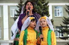 Безнең балаларыбыз Самирә Б., Дәрия В. һәм тәрбиячеләре Лилия Сабировна "Мин татарча сөйләшәм" муниципаль акциясендә "Туган авыл" җыры белән катнаштылар