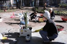 Продолжается санитарно-экологический двумесячник "ЭкоВесна". Сотрудники облогараживают территорию детского сада, идет покраска поребриков, обновление поделок.