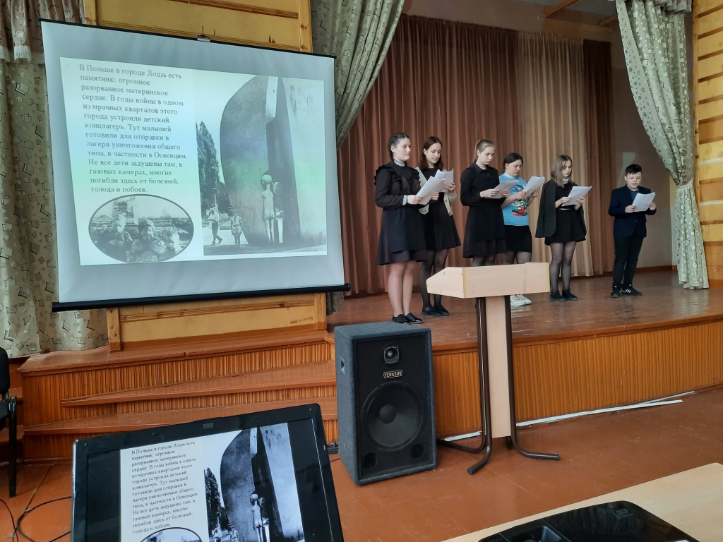 8 апреля 2021 года Волонтеры Победы объединения "Я-доброволец! Я-волонтер!", "ВСОШ №2 им.Героя Советского союза Н.Соболева" и Районный Совет провели для учеников 7-9 классов тематическое мероприятие "Надо помнить...", посвященное дню освобождения узников из концлагерей. Волонтеры рассказали о неимоверных тяготах нацистского плена и мучительной смерти миллионов человек в концлагерях Бухенвальд, Освенцим, Дахау и Майданек. Документальный фильм "Воспоминания малолетних узников концлагерей" заставил подавляющее большинство участников встречи искренне сопереживать. Эти сопереживания были выражены в Минуте молчания в память об этих трагических событиях и погибших людях… Ссылки на фото Надо помнить 1.jpg Надо помнить 2.jpg Надо помнить 3.jpg Надо помнить 4.jpg