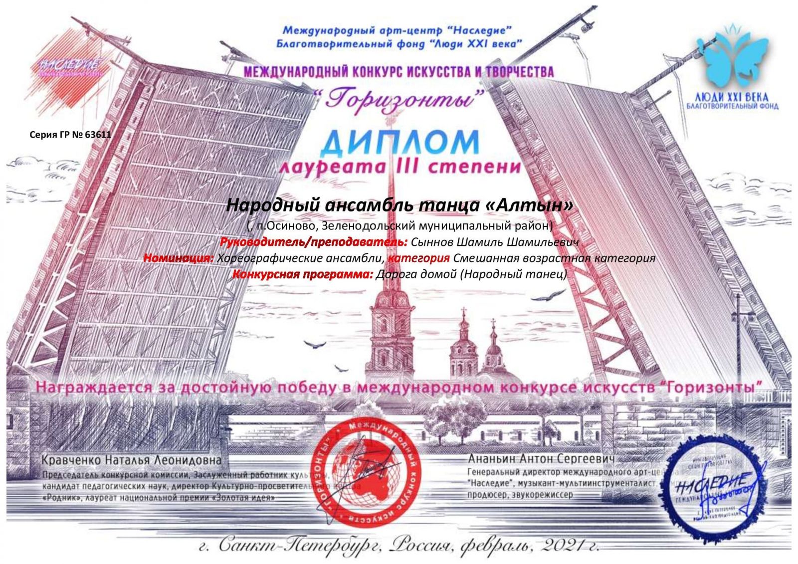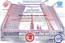 Народный ансамбль объединения "Алтын" награжден дипломом III степени Международного конкурса искусств и творчества "Горизонты"в номинации "Хореографичсекие коллективы" в категории "Смешанная возрастная группа" с народным танцем "Дорога домой!"