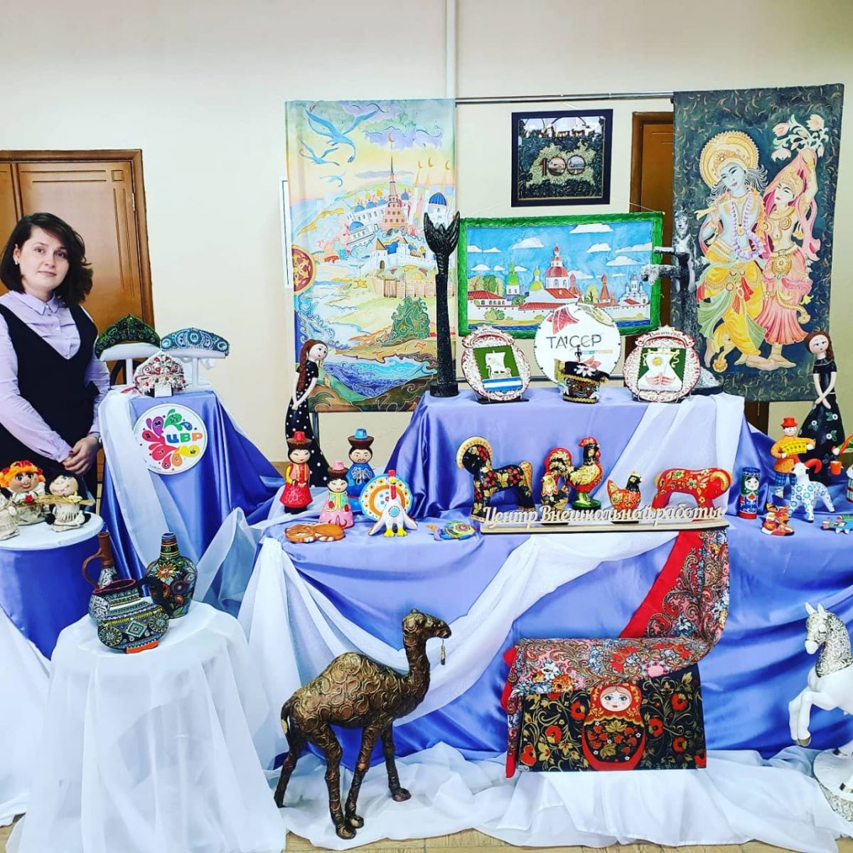 В фойе дома культуры развернулась и выставка декоративно-прикладного искусства Центра внешкольной работы.