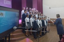 Учащиеся объединения "Хоровая студия "Подсолнушки" (педагог дополнительного образования Хабарова Валентина Ивановна) выступают для гостей республиканского семинара.
