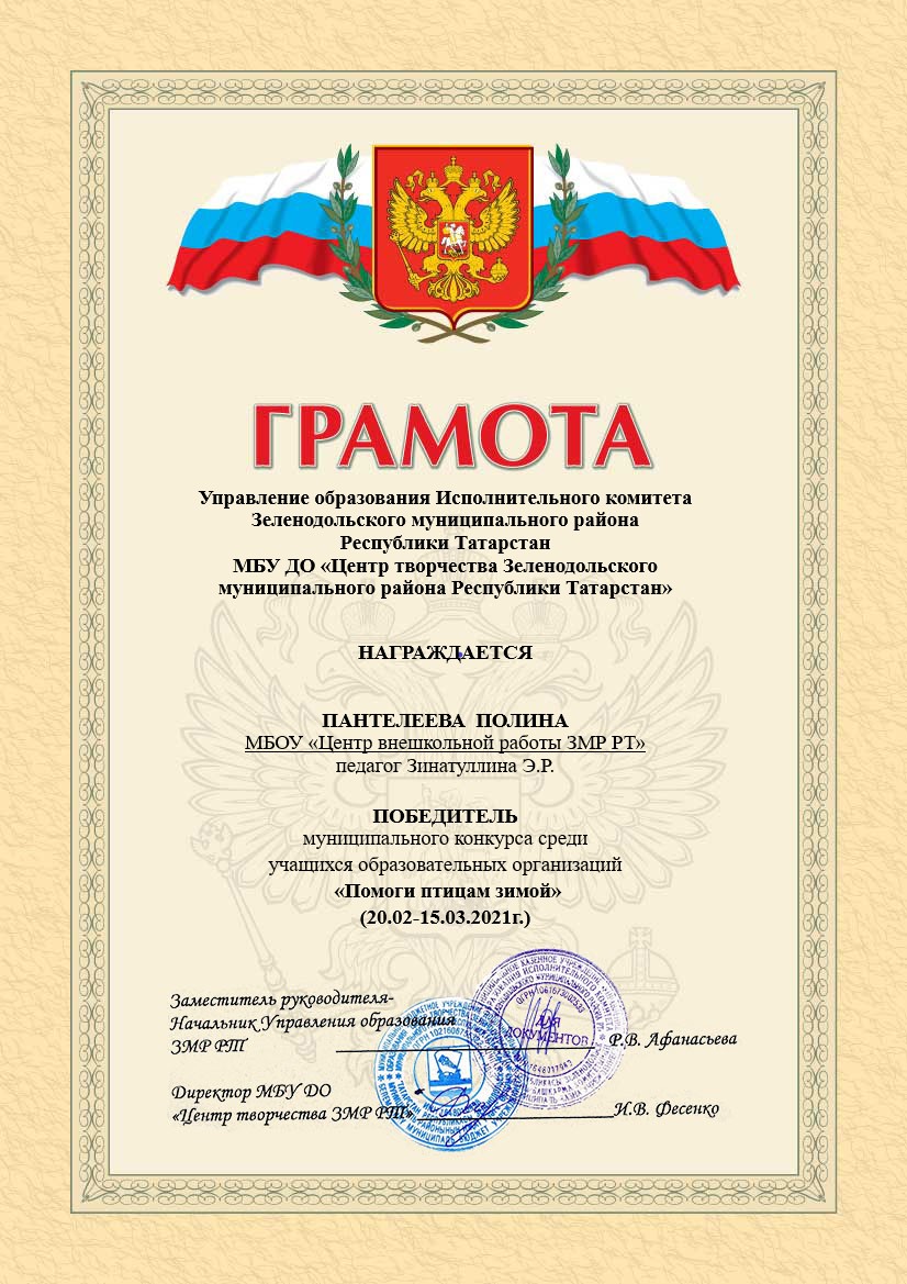 Муниципальное бюджетное учреждение дополнительного образования "Центр внешкольной работы Зеленодольского муниципального района РТ"/"Татарстан Республикасы Зеленодольск муниципаль районының мәктәптән тыш эшләр үзәге " өстәмә белем бирү муниципаль бюджет учреждениесе