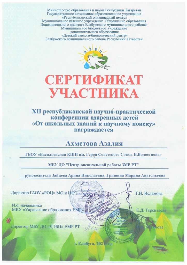 | Руководитель: | Ахметгараева Алина Альфировна |