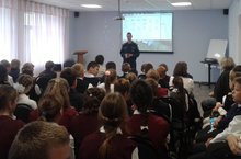25 сентября 2018 года на встречу с учащимися нашей школы был приглашен государственный инспектор по маломерным судам. В преддверии осенних каникул он провел беседу по теме «Меры безопасности на водных объектах в осенне - зимний период». Ребята освежили знания по безопасному поведению на водных объектах и оказанию первой помощи пострадавшим.
