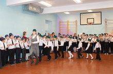 По традиции нашей школы состоялся парад военной песни среди 2-9 классов. Учащиеся 8-9 классов показали стровую подготовку.