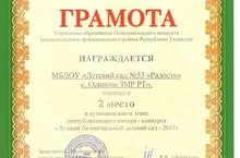 По итогам муниципального этапа Республиканского конкурса "Лучший билингвальный детский сад" наш детский сад занял 2 почетное место! Наш педагогический коллектив показал себя как лучшим в организации процесса обучения детей государственным языкам Республики Татарстан, а также высокое качество билингвального образования дошкольников. Поздравляем!