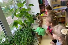 В начале весны, педагог группы №7 Суворова Ю.Н. вместе с детьми в группе начала реализовывать проектную деятельность посадка растений "Огород на подоконнике". Целью создания огорода на окне является вовлечение детей в практическую деятельность по выращиванию культурных растений, развитие интереса к опытнической и исследовательской работе в области растеневодства и цветоводства. Огород на подоконнике способствует развитию любознательности и наблюдательности у детей, это помогает лучше познать растительную жизнь. Он способен расширить и развивать эстетическое чувство, умение радоваться красоте выращиваемых растений, об условиях, необходимых для роста и развития результатом своего труда. Дети активно участвовали в посадке огорода. Воспитанник группы №7 посадили лук, посеяли перцы, редиску, огурцы, горох и разнообразные цветы. Дети с нетерпением ждали и наблюдали, когда появится первый росток. И уже появились не только ростки, но и «пуплята» на огуречной лозе. Совместными усилиями дети создают красивый и вкусный урожай на окне.