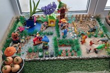 Безнең балалар бакчасында ел саен март аенда барлык яшь төркемнәрендә "Тәрәзә төбенә бакча" утырту күркәм гадәткә әйләнде. Балалар педагоглар белән бергә кечкенә бакча фигуралар, коймалар, йортлар рәсмиләштерәләр - шулай булгач, тәрәзә төбендә тулы бер мини-ферма килеп чыга! Балалар бакча белән шөгыльләнү һәм үз хезмәтләренең нәтиҗәләрен күзәтү белән канәгатьләнәләр.