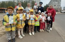 Сегодня в нашем детском саду прошла акция «Безопасный пешеход». С детьми старшей группы состоялась ознакомительная экскурсия к ближайшему перекрестку. В мероприятии приняли участие начальник ОГАИ ОМВД России по ЗР Идиятуллин Р.И. и начальник отделения по профилактике ЗР ГБУ БДД Шакирова З.В.. В ходе экскурсии обратили внимание детей на дорожные знаки, вспомнили правила проезда на транспорте, повторили правила безопасного поведения на дороге. Дети вручили прохожим памятки с правилами поведения на дороге, а от гостей подарки дидактические игры и Памятки пешехода.