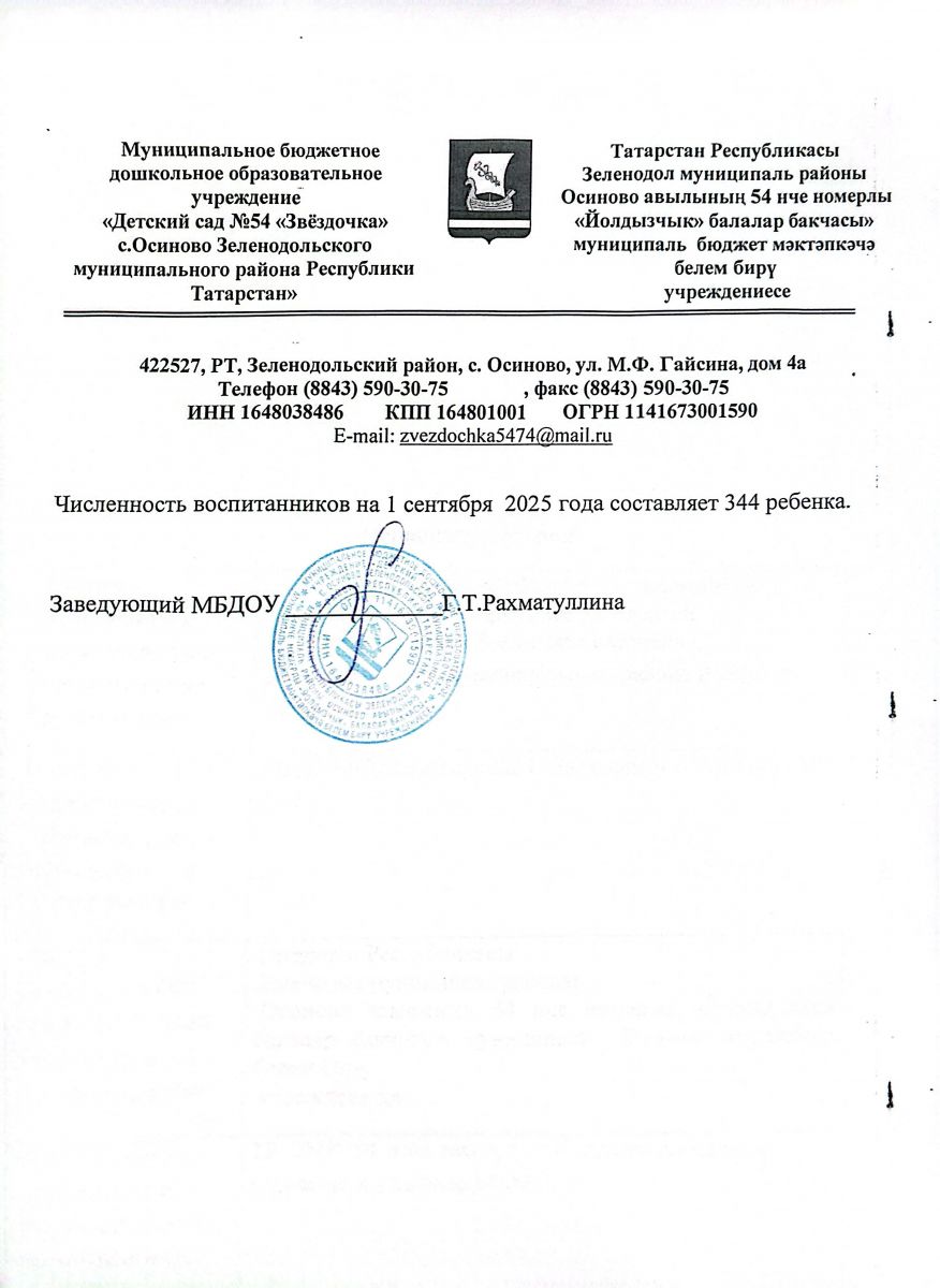 Короткое название: МБДОУ «Детский сад №54 «Звёздочка» с. Осиново ЗМР РТ»