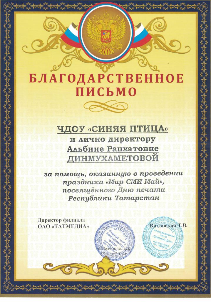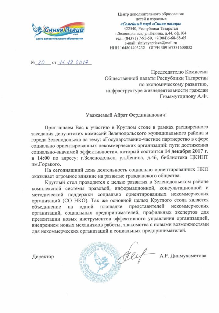 Негосударственная образовательная организация дополнительного образования «Центр дополнительного образования «Синяя птица»