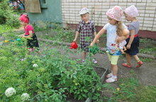 Воспитатели детского сада увлекли своих ребятишек огородом. Теперь дети заняты поливкой, прополкой и выполняют это с удовольствием, а урожай не заставил себя долго ждать.