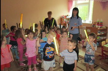25, 26 сентября в детском саду были проведены Дни безопасности по теме "Правила дорожного движения для детей". Дети группы №5 совместно с воспитателями подготовили развлечение о правилах дорожного движения. Почетным гостем была инспектор по пропаганде БДД ОГИБДД ОМВД по Зеленодольскому району Леонтьева Ю. И. Кульминацией развлечения были подарки от инспектора - светоотражающие браслеты. Фотоматериал можно посмотреть в разделе "Медиатека", подраздел Фотогалерея".
