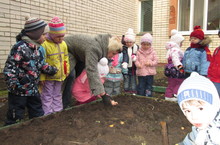 Продолжаются осенние работы на огороде. Воспитатели группы № 10 со своими детьми 23 октября посадили у себя на грядке чеснок.
