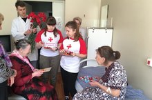Волонтеры-медики Зеленодольского медицинского училища поздравили ветеранов и тружеников тыла, находящихся на лечении в ГАУЗ "Зеленодольская центральная районная больница" с наступающим Днем Победы. Открытки, георгиевские ленточки, сделанные студентами и проживающими Зеленодольского психоневрологического интерната, были вручены пациентам, сопровождаясь добрыми словами поздравлений.
