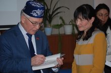 В заключение встречи Разиль Исмагилович прочитал несколько стихотворений и ответил на многочисленные вопросы зрителей. А у нашей библиотеки появилась книга с автографом Разиля Исмагиловича.