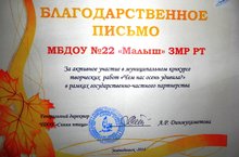 | Короткое название: | МБДОУ "Детский сад общеразвивающего вида №22 "Малыш" ЗМР РТ |