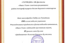 В рамках празднования 135-летия со дня рождения великого татарского поэта Габдуллы Тукая и Года родных языков и народного единства, в целях привлечения к миру татарской поэзии, ценностям национальной культуры педагоги и воспитанники детского сада №26 "Дюймовочка" приняли участие в муниципальном поэтическом марафоне «Поэтический мир Тукая», организованном редакцией газеты «Яшел Үзән». Видеоматериал можно посмотреть в Instagram Яшел Үзән.