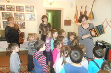 Воспитанники старших групп посетили музей музыкальных инструментов гимназии №5. Во время посещения музея дети с интересом слушали рассказ педагога по музыке о каждом, представленном в экспозиции, музыкальном инструменте, рассматривают репродукции и непосредственно инструменты. Яркое впечатление оставило выступление ученика татарской гимназии, который исполнил мелодию «Туган тел» на народном инструменте – курае.