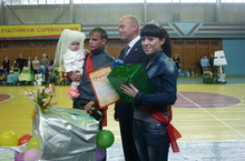 Поздравляем победителей в номинации "Самая криативная коляска" молодую семью Гордеевых: Регину Альбертовну, Артема Игоревича и юную конкурсантку, "невесту" на белом "лимузине" - 8-месячную Карину. Девиз семьи: Семья – это важно! Семья – это сложно! Но счастливо жить одному Невозможно!