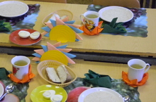 В детском саду подведены итоги конкурса «Столик, накройся!». Завтрак, обед, полдник, ужин — не только мероприятия, связанные с организацией горячего питания, это серьезные воспитательные ритуалы, связанные с освоением ребенком некоторых культурных норм общества. Участники конкурса - воспитатели, младшие воспитатели, родители и воспитанники групп создали благоприятные условия для проведения режимных моментов, связанных с приемом пищи.
