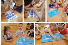 С самого утра, во время тематических бесед: "Жители морей и океанов", "Необъятные морские просторы", "Сокровища морей", дети с восхищением слушали рассказы, рассматривали иллюстрации и фотографии, познакомились с интересными видами рыб, отгадывали интересные загадки и ребусы. Ребята совместно выполнили коллективную работу "Морские обитатели". С удовольствием вырезали рыбок, черепашек и морские звёзды, раскрашивали их и расселяли в "подводном мире".