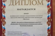 Балалар бакчасында тәрбияләнүчеләр "Премьера" балалар арасында театраль постановкалар муниципаль конкурсында катнаштылар һәм Призерлар булдылар. Котлыйбыз!!!