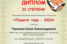 "Ел педагогы-2023" Бөтенроссия һөнәри осталык конкурсында Тарнаева тәрбиячесе Е.А.