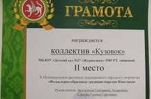 Поздравляем Детский коллектив «Кузовок» и музыкального руководителя Загуменную Екатерину Андреевну с II местом в Муниципальном фестивале традиционного народного творчества «Фольклорно - обрядовые традиции народов Поволжья».