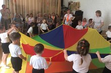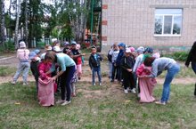 Сегодня в нашем детском саду прошёло гулянье "Красная горка". Гулянье прошло на улице. Праздник начался с общего хоровода. Затем дети посмотрели кукольное представление "Фома и Ерема". Продолжение праздника проходило по игровым " пяточкам", на которых дети играли в городки, ходили на ходулях, играли с яйцами, пели частушки. Завершился праздник общим хороводом.