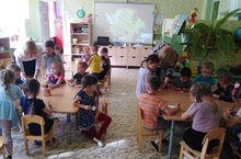 Сегодня по традиции и по календарю народных праздников прошёл праздник "Сабантуй". В музыкальном зале состоялось представление с героями, которые хотели помешать празднику "Сабантуй". Батыр всем помог. После чего на улице пршли состязания, прыжки в мешках, разбивали горшки.....