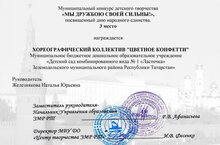 Безнең балалар бакчасының иҗат коллективын "Төсле конфетти" “Дуслыкта көч” узган муниципаль конкурсында 3 урын белән котлыйбыз.