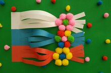 Россия Федерациясенең Дәүләт флагы көне кысаларында тәрбияләнүчеләр ата-аналар белән бергә шундый флаглар ясадылар.