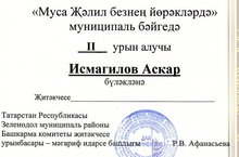 Поздравляем!!! Аскар И. победитель конкурса "Муса Җәлил безнең йөрәкләрдә"