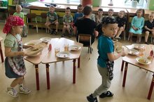 Шулай итеп, "Карамель" төркемендә Лилия Зульфатовна балаларга Муса ilәлилнең бала чагында акыллы булуын һәм аңа нинди авыр тормыш кичерергә кирәклеген сөйләде. Моннан соң егетләр шагыйрьнең бер әсәрен - "Кызыл ромашка" тыңладылар. Егетләр әсәрнең идеясын һәм ни өчен автор шигырьне шулай атаганнарын аңладылар. Тынычлык, тынычлык һәм чисталык билгесе буларак, рәсем дәресендә балалар ак ромашка тарттылар.Икенче яшь "Фиджет" төркеме укучылары шагыйрь тормышының авыр еллары турындагы хикәяне тыңладылар, "Минем этем" шигырен тыңладылар. Аннары укытучы Хасанова Ф.К этнең буяу китабын буяуны тәкъдим итте, алар күз алдына китергәнчә. алар ишеткән шигырь. Ахырда, без "Шагги эт" ачык уенын уйнадык. -
