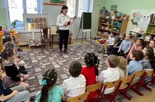 120 -летию со дня рождения А.Гайдара была посвящена встреча сотрудников центральной детской библиотеки им. А.П. Гайдара с ребятами подготовительной к школе группы « Удальцы». Библиотекари подготовили увлекательную беседу о биографии писателя,его творчестве и замечательных произведениях для детей- «Тимур и его команда», «Чук и Гек», « Сказка о Военной тайне и о Мальчише-Кибальчише. Увлекательный рассказ очень понравился детям.