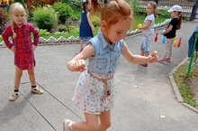 Многие родители, а уж тем более бабушки и дедушки помнят то время , когда они с утра до вечера в летние каникулы проводили во дворе со своими друзьями. Вот и воспитатель группы «Карамелька», Рамзия Вагизовна, в один из дней решила рассказать своим ребятам об играх во дворе! На прогулке девочки устроили турнир по игре в «резинки», и потом все вместе ребята поиграли в кегли) Увлекательно провели время со своими друзьями!