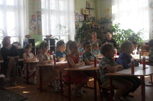 Конкурс рисунков по сказкам татарских писателей прошел в младшей группе. Дети вместе с родителями рисовали сюжеты из любимых сказок.