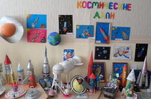 Выставка поделок "Космические Дали" была приурочена ко Дню Космонавтики. В холле детского сада были представлены совместные работы воспитанников и их родителей. Луноходы, Космические корабли, Ракеты и Космические пришельцы украсили интерьер дошкольного учреждения.