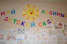 Выставка детских рисунков была вывешена в холле детского сада.