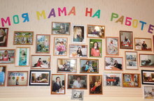 Ко Дню Матери организована выставка "Моя мама на работе". Дети очень гордятся своими мамами и рассказывают кем работают их любимые мамочки.