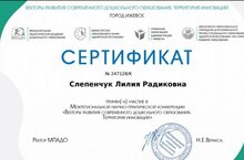 Воспитатель средней группы Слепенчук Л. Р. приняла участие в Межрегиональной научно-практической конференции "Векторы развития современного дошкольного образования. Территория инноваций".