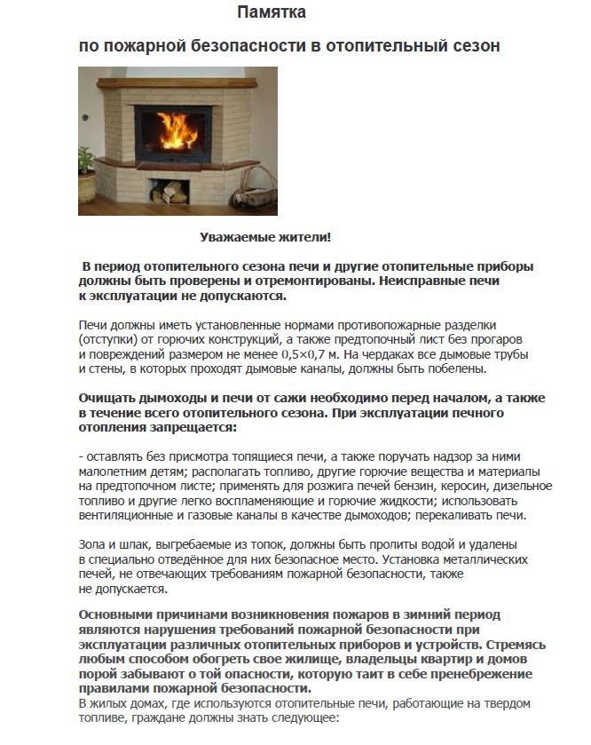 ПРАВИЛА ПОЖАРНОЙ БЕЗОПАСНОСТИ ПРИ ЭКСПЛУАТАЦИИ ПЕЧНОГО ОТОПЛЕНИЯ, ГАЗОВОГО ОБОРУДОВАНИЯ И ЭЛЕКТРОПРИБОРОВ 30.11.2018