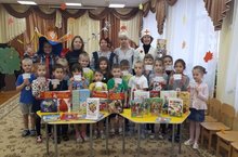 Сегодня наш детский сад посетили представители центральной библиотеки им. Гайдара в рамках акции "Библиотека идет в гости". В Книжное царство попали воспитанники, где встретились с героями сказок, занимательными викторинами и получили медальки за свои успехи. Непременно это мероприятие оставит добрый и интересный след в детской памяти и побудит их в дальнейшем посещать этот чудесный сказочный мир, читая книжки.