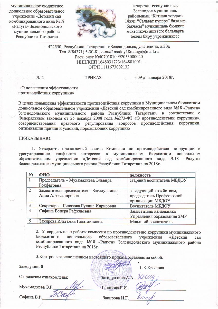 Приказ о повышение эффективности противодействия коррупции в ДОУ